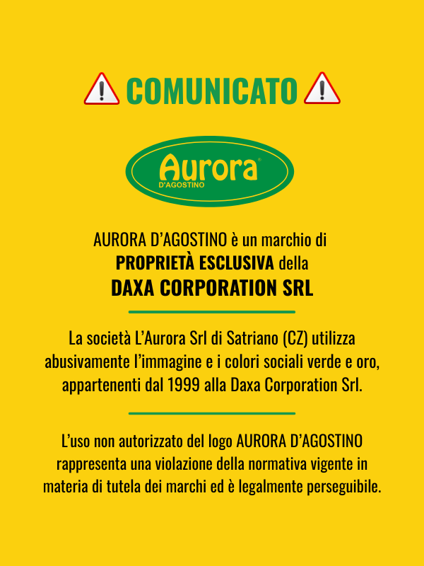 Aurora D’Agostino è un marchio registrato di proprietà esclusiva della Daxa Corporation Srl. © Tutti i diritti sono riservati